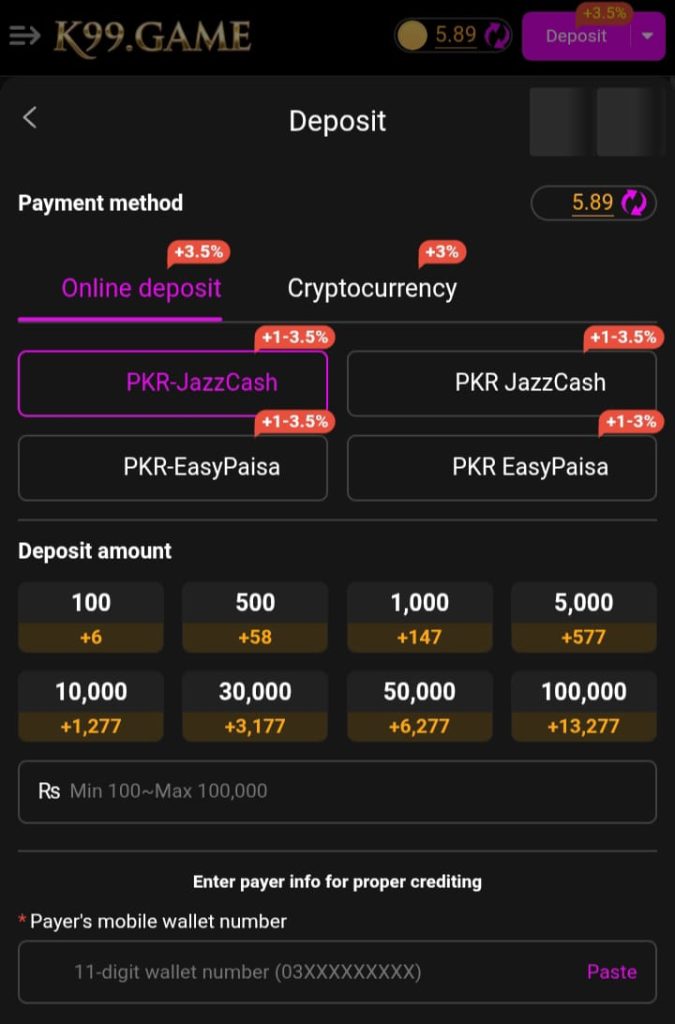 How to Deposit Money in K99 Game?