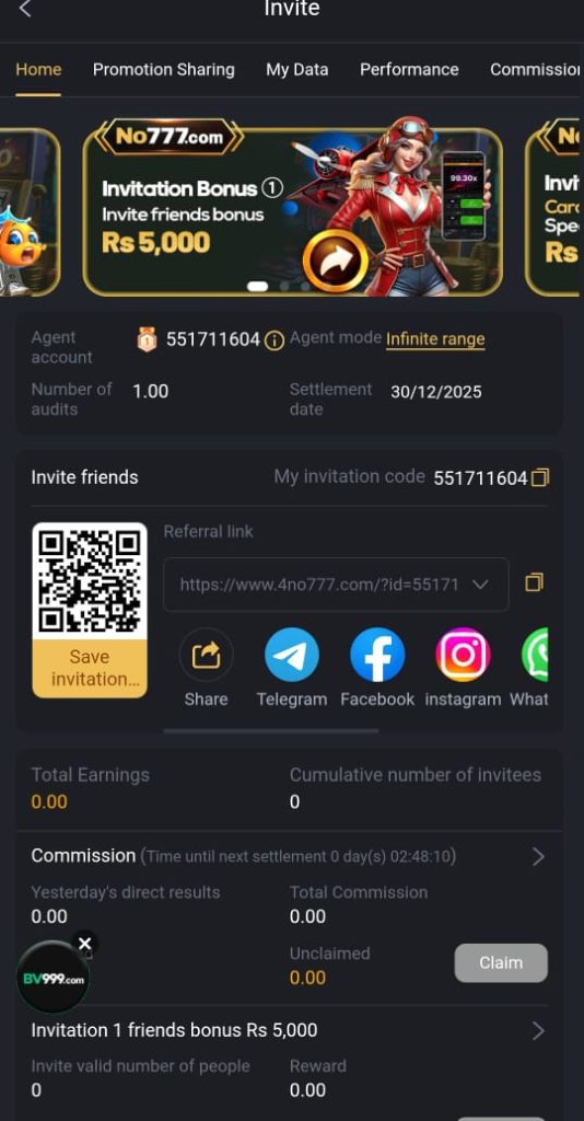 One of the biggest advantages of NO777 Game is its referral earning system. You can earn extra cash by simply sharing your referral link with friends and family. When someone joins using your link, you receive rewards, bonuses, and sometimes instant cash.