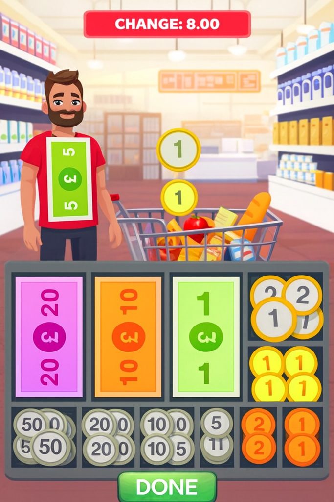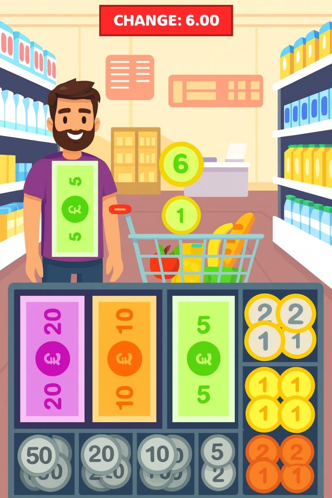 The game uses real-life money systems, realistic items, price tags, and customer interaction. This makes the experience useful for both kids who want to learn basic math and adults who want to sharpen their mental speed.